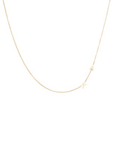 Timeless 14k solid gold necklace with customizable letters placed sideways. Starting with 2 initials, you can add up to 6 letters and place them in the order you would like.