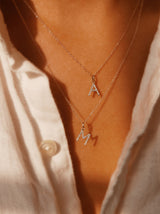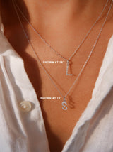 14k solid gold & diamond initial pendant on a dainty 1.1mm cable chain. Listing is for one (1) individual chain and one (1) diamond letter pendant.