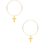 Large thin gold hoops make a big statement with small embellished cross