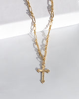 Vintage cross pendant hangs on multi-link 14K gold filled chain.